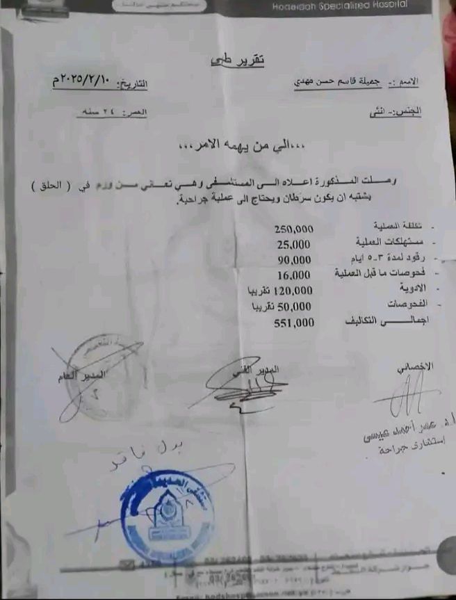 ونظرا لشده الظروف. تسلف مبلغ مالي لعلاجها