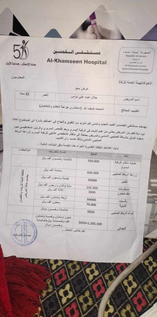 ونرفق لكم التقرير الطبي وافادة مكتب الشؤن الاجتماعية في صنعا