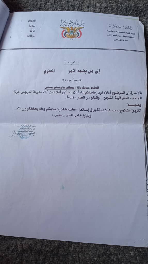 مصطفي سالم صغير مجمشي من ابناء #قرية الشجن مديرية الدريهمي